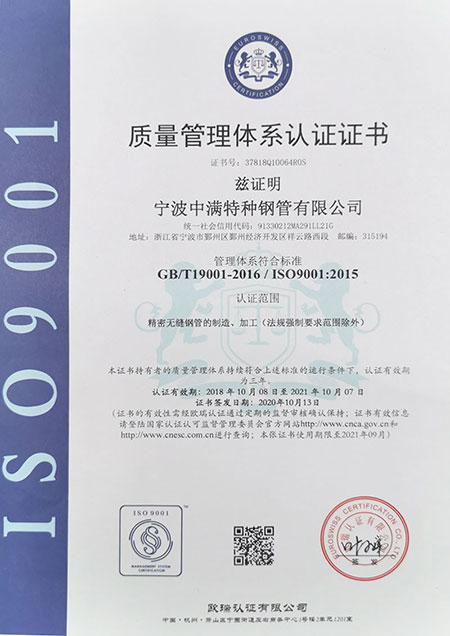 寧波中滿特種鋼管有限公司是一家專業(yè)生產(chǎn)精密光亮無縫鋼管、碳結(jié)鋼無縫鋼管、合金鋼管、異型鋼管、方管、六角鋼管、無氧光亮退火精密鋼管、汽車零部件用精密無縫鋼管、高壓膠管管芯用精密管。